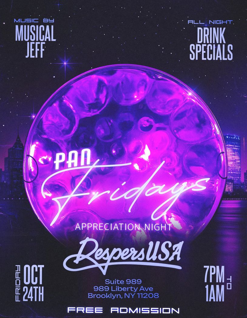 Join us for a special edition of Pan Fridays as we celebrate everyone who keeps the steelpan spirit alive! Enjoy a night of sweet pan music, good vibes, and community appreciation at Suite 989. Free admission, drink specials, and live entertainment by Musical Jeff and guest DJs. Let’s close out the season with rhythm, gratitude, and pure Despers energy!